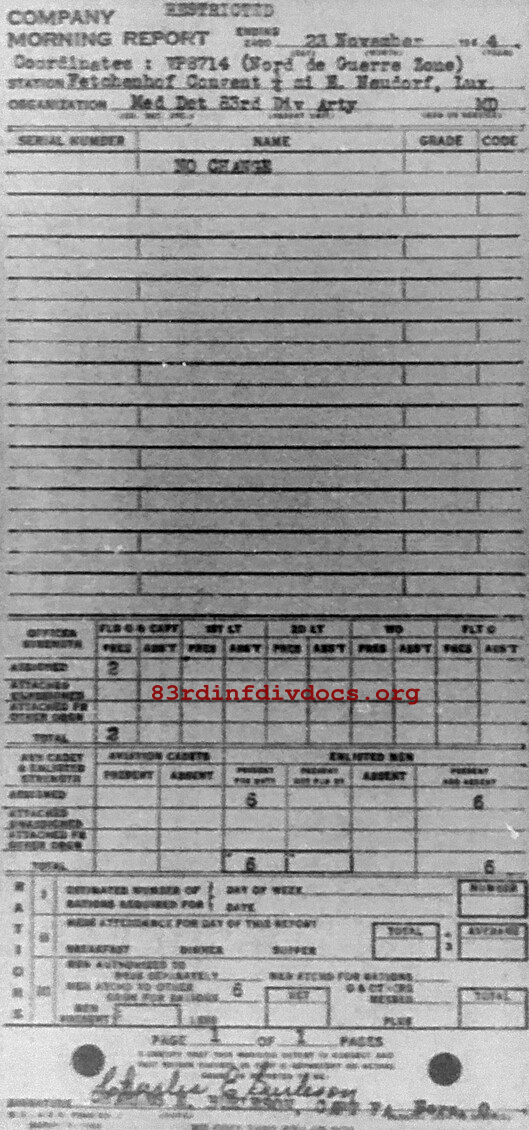 Morning report ARTYMEDDET/83 for November 23, 1944