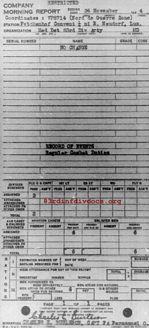 Morning report ARTYMEDDET/83 for November 24, 1944