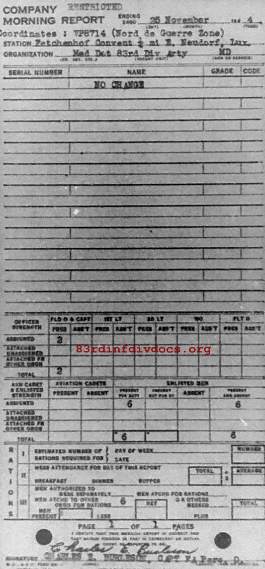 Morning report ARTYMEDDET/83 for November 25, 1944
