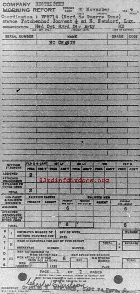 Morning report ARTYMEDDET/83 for November 30, 1944