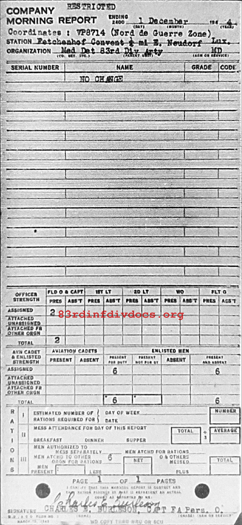Morning report ARTYMEDDET/83 for December 1, 1944