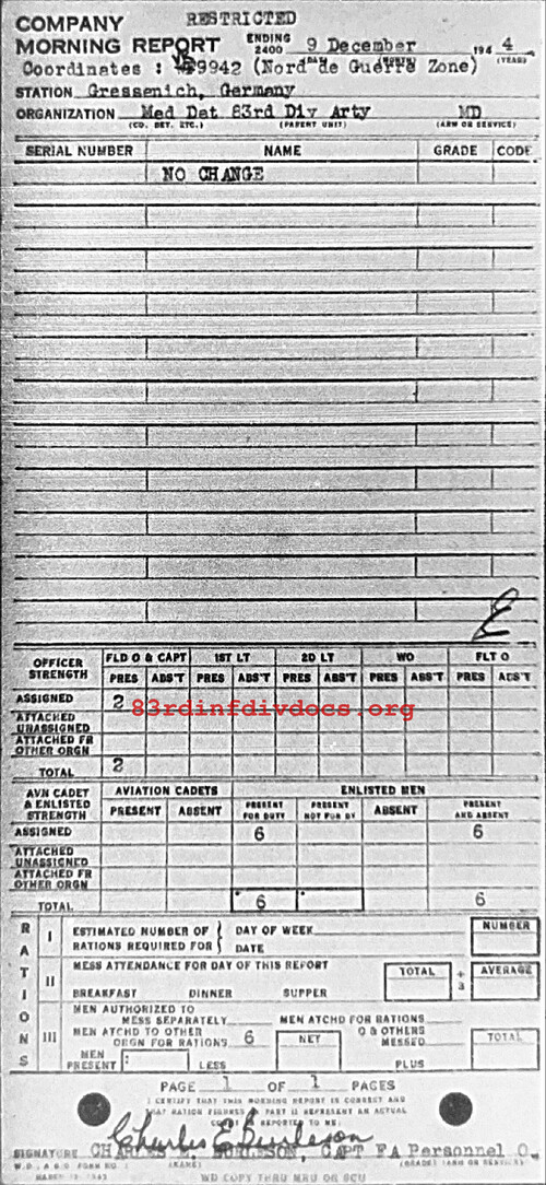 Morning report ARTYMEDDET/83 for December 9, 1944