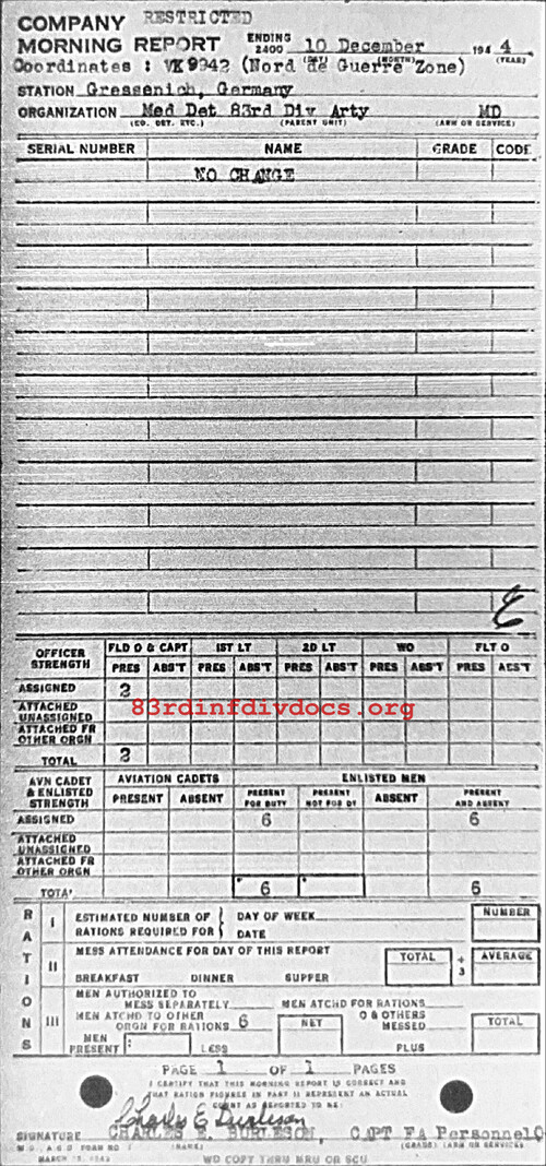 Morning report ARTYMEDDET/83 for December 10, 1944