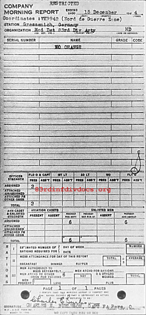 Morning report ARTYMEDDET/83 for December 15, 1944