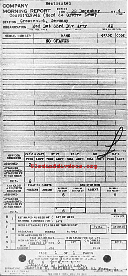 Morning report ARTYMEDDET/83 for December 22, 1944