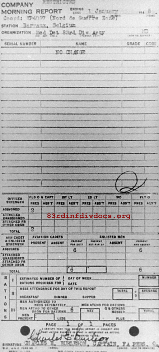 Morning report ARTYMEDDET/83 for January 1, 1945