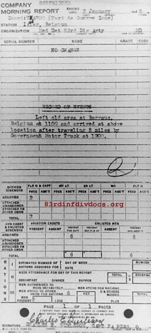 Morning report ARTYMEDDET/83 for January 2, 1945