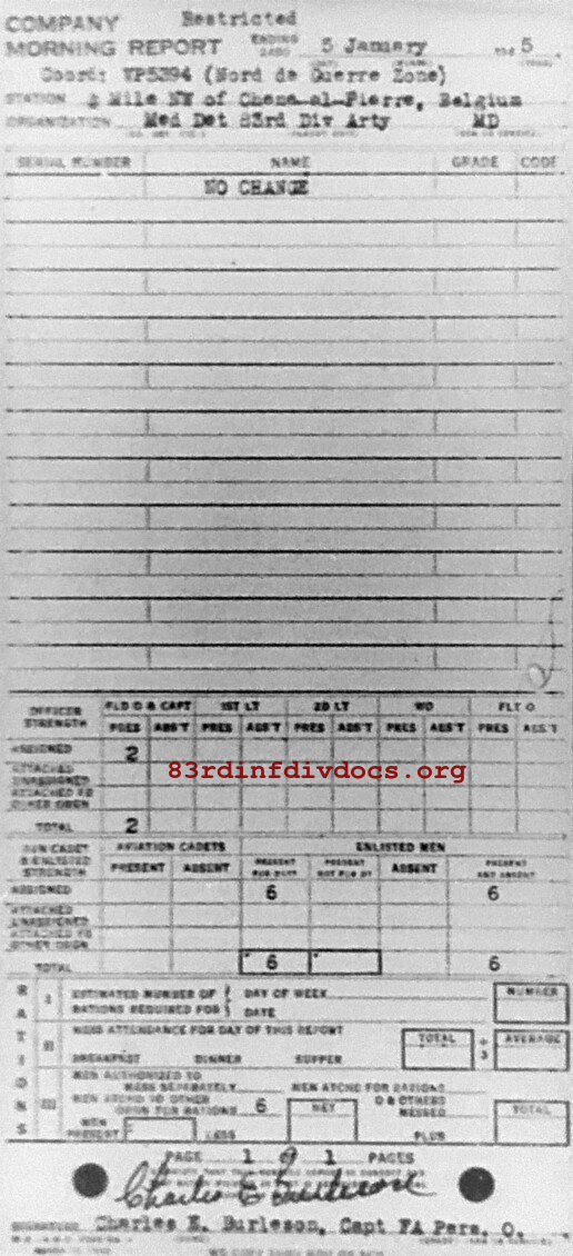 Morning report ARTYMEDDET/83 for January 5, 1945