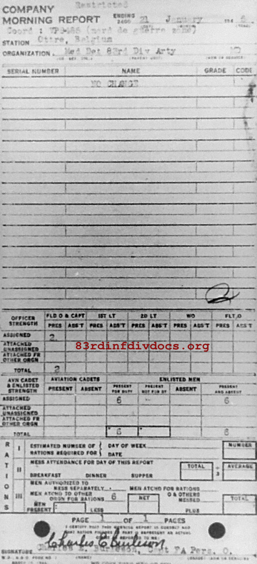 Morning report ARTYMEDDET/83 for January 21, 1945