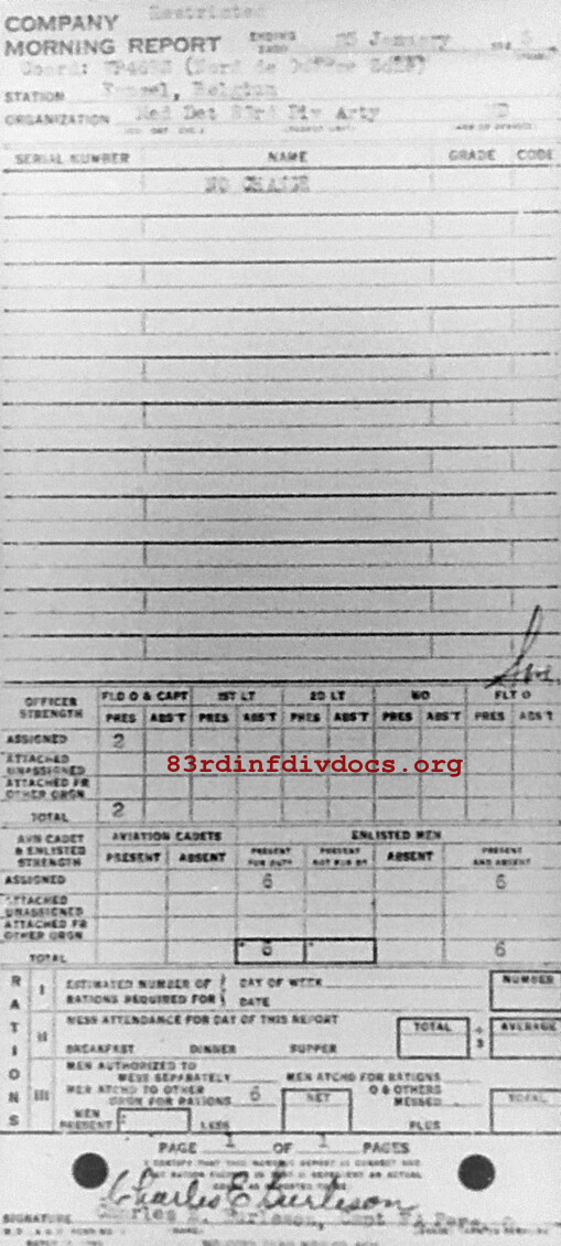 Morning report ARTYMEDDET/83 for January 25, 1945
