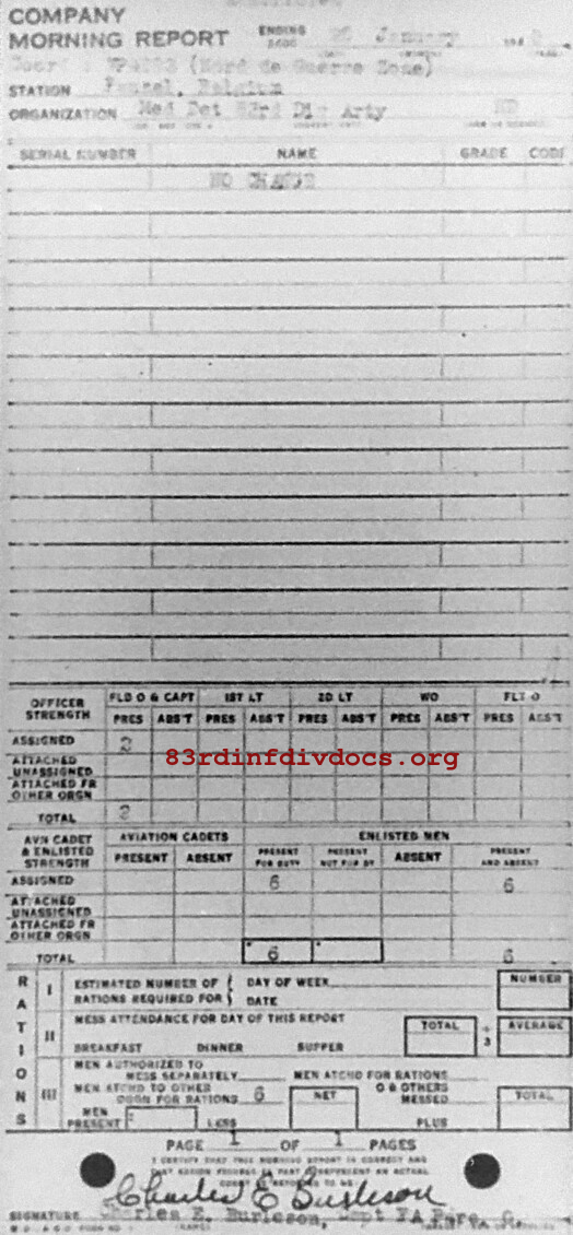 Morning report ARTYMEDDET/83 for January 26, 1945