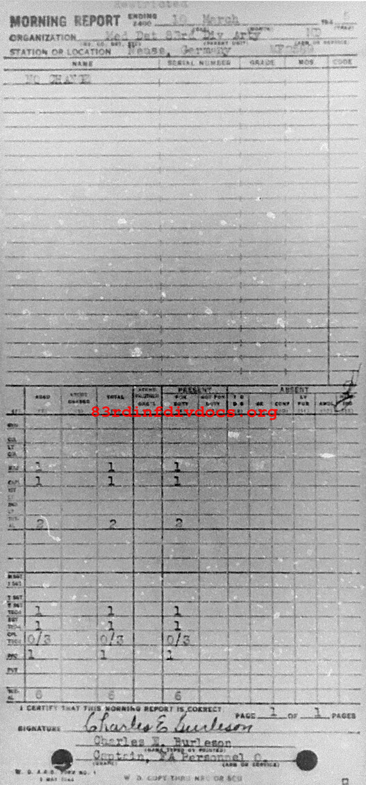 Morning report ARTYMEDDET/83 for March 10, 1945