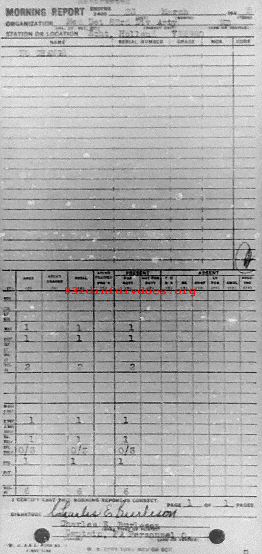 Morning report ARTYMEDDET/83 for March 23, 1945