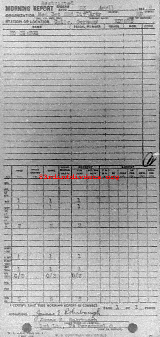 Morning report ARTYMEDDET/83 for April 23, 1945