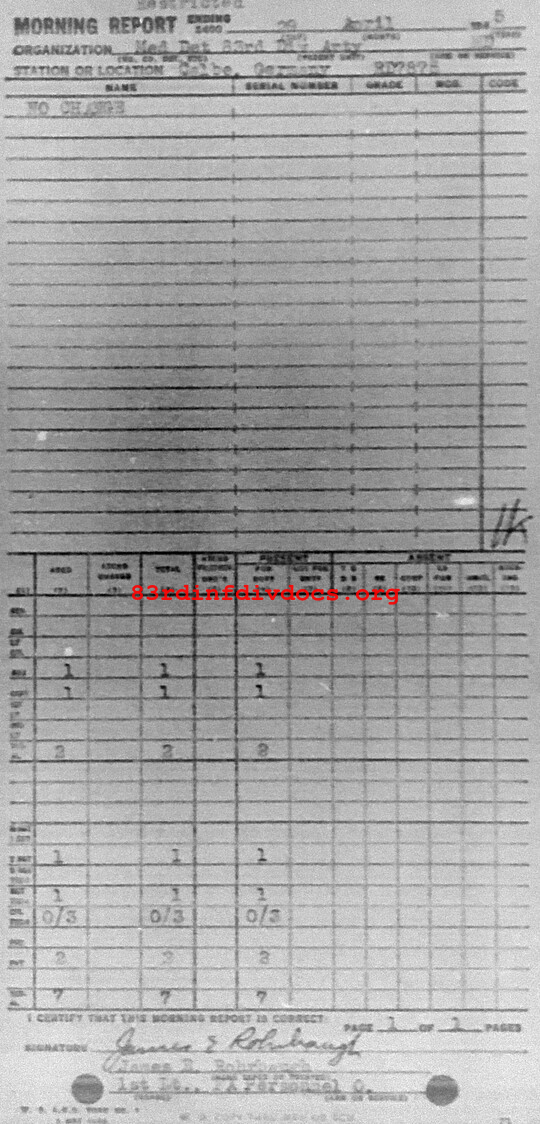 Morning report ARTYMEDDET/83 for April 29, 1945