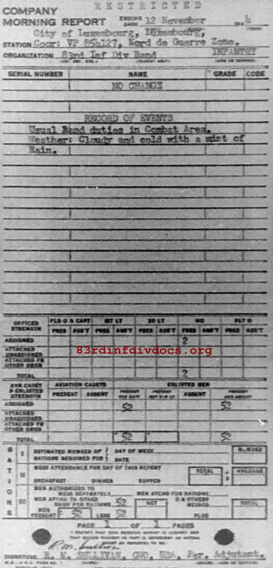 Morning report BAND/83 for November 12, 1944