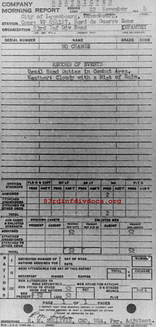 Usual Band Duties in Combat Area. Weather: Cloudy with a Mist of Rain.