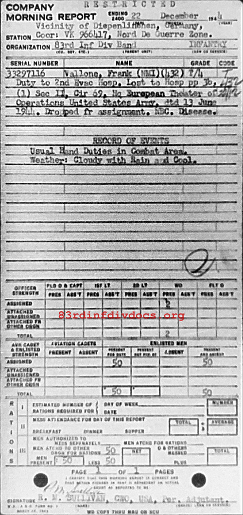 Morning report BAND/83 for December 22, 1944