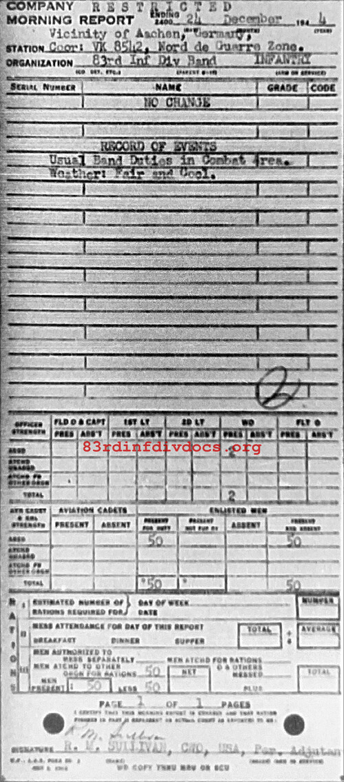 Usual Band Duties in Combat Area. Weather: Fair and Cool.
