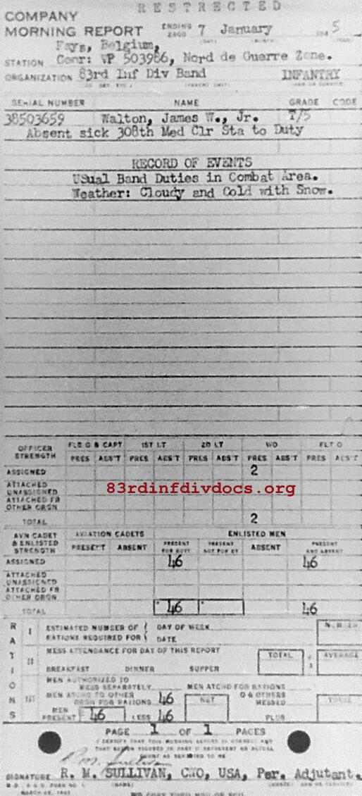 Morning report BAND/83 for January 7, 1945