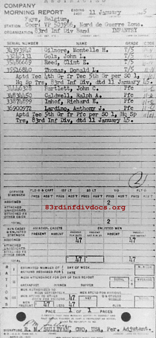 Morning report BAND/83 for January 11, 1945