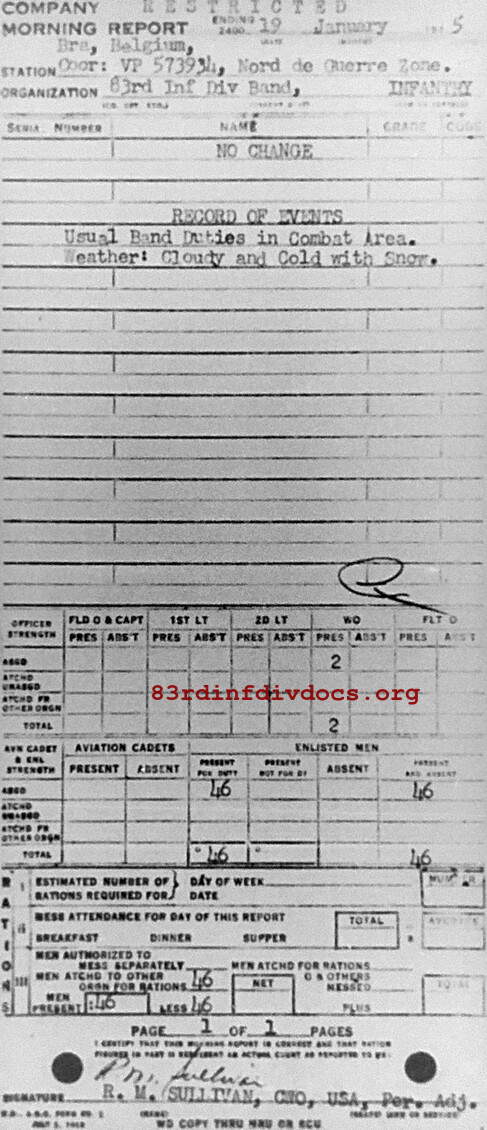 Morning report BAND/83 for January 19, 1945
