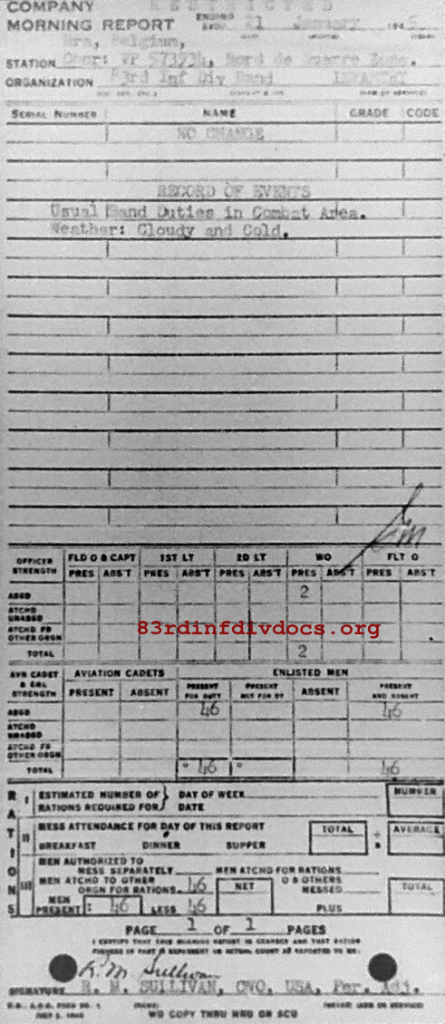 Usual Band Duties in Combat Area. Weather: Cloudy and Cold.