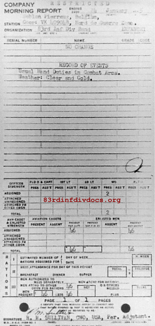 Usual Band Duties in Combat Area. Weather: Clear and Cold.