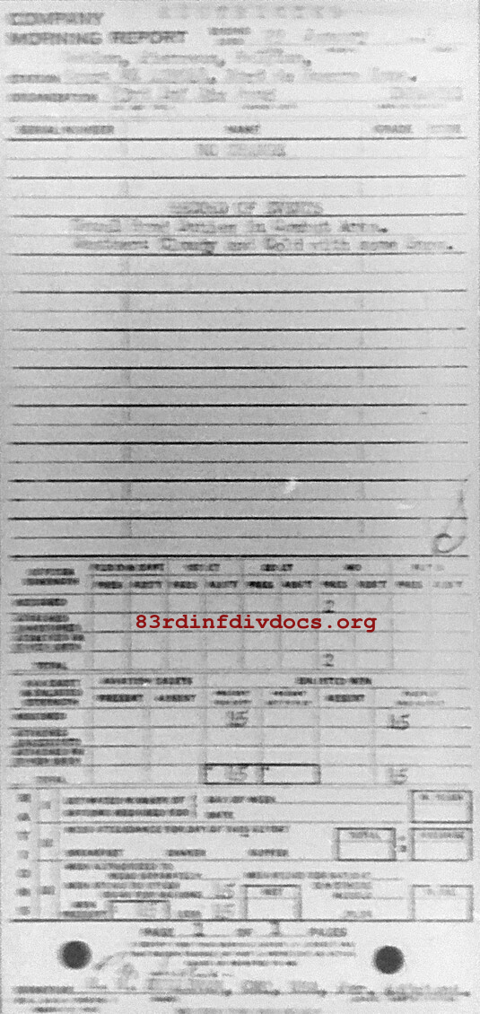 Morning report BAND/83 for January 29, 1945