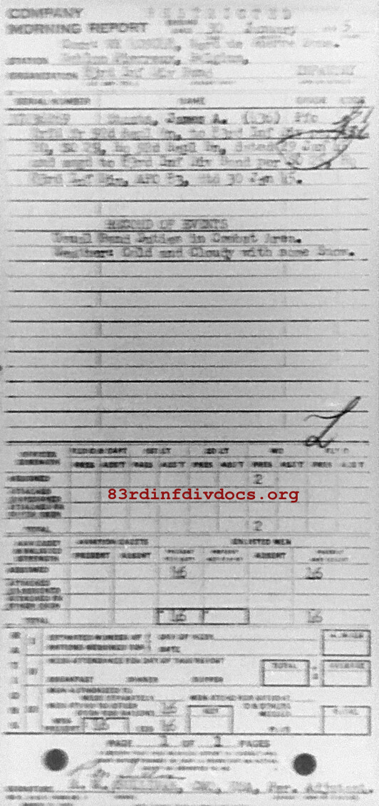 Morning report BAND/83 for January 30, 1945