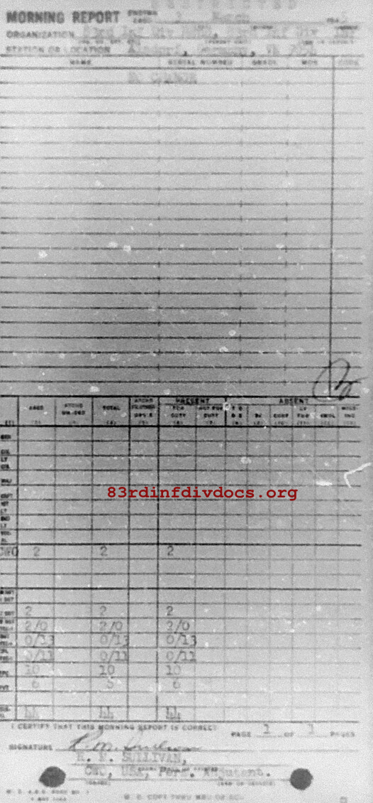 Morning report BAND/83 for March 3, 1945