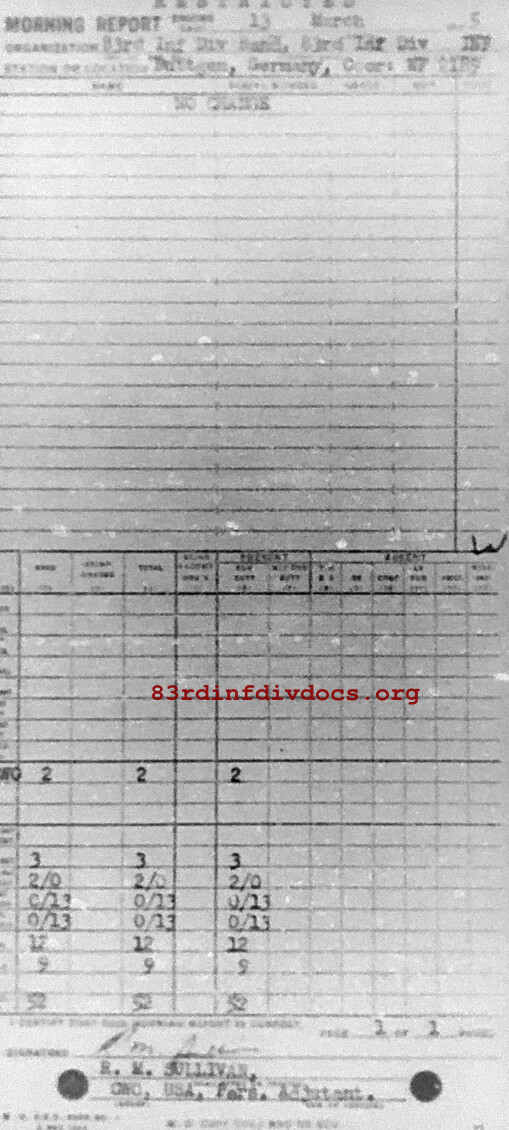 Morning report BAND/83 for March 13, 1945