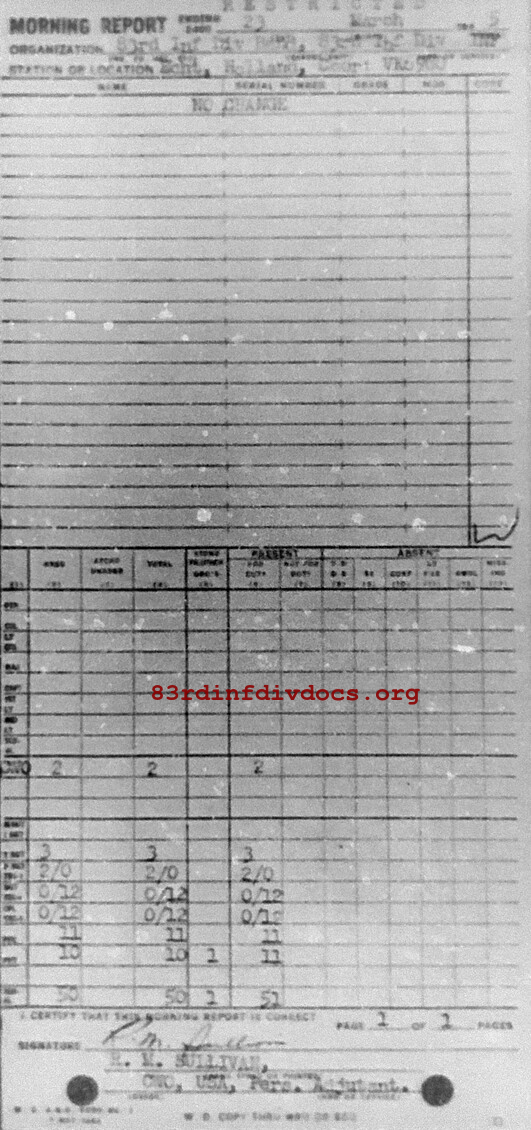 Morning report BAND/83 for March 23, 1945