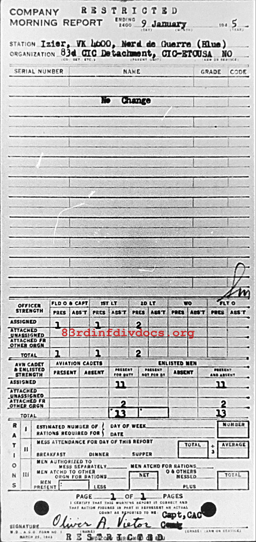 Morning report CIC/83 for January 9, 1945