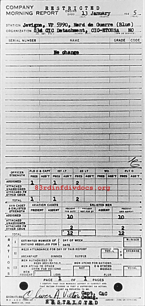 Morning report CIC/83 for January 13, 1945