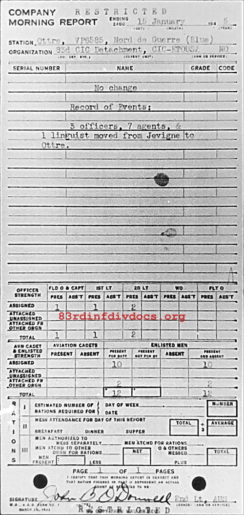 Morning report CIC/83 for January 15, 1945