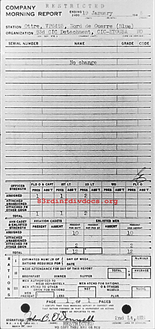 Morning report CIC/83 for January 19, 1945