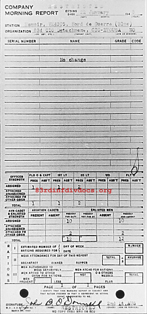 Morning report CIC/83 for January 22, 1945