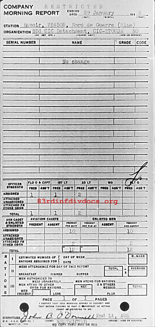Morning report CIC/83 for January 29, 1945