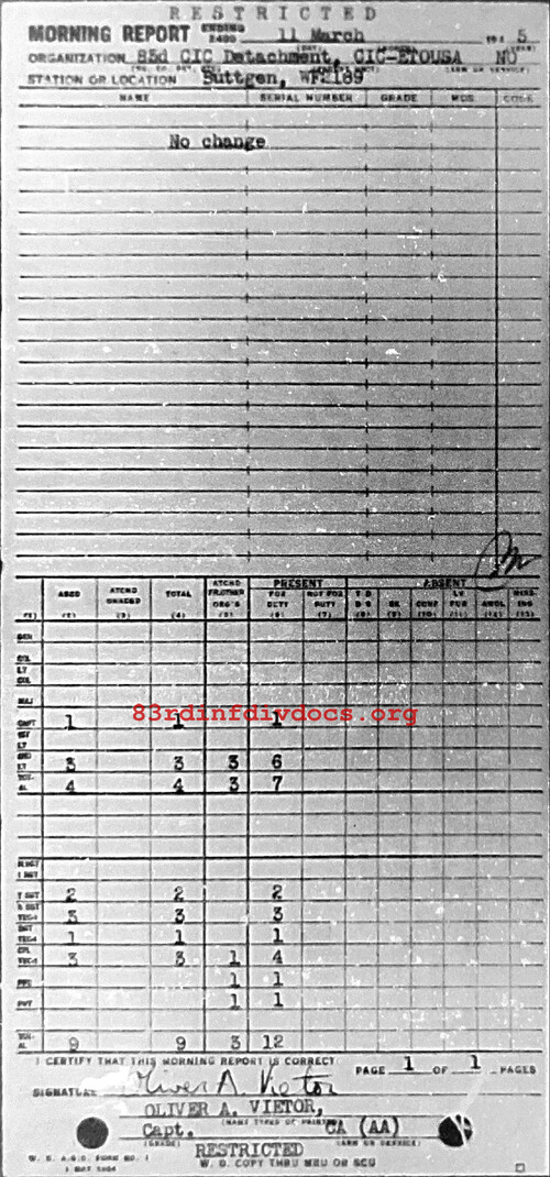 Morning report CIC/83 for March 11, 1945