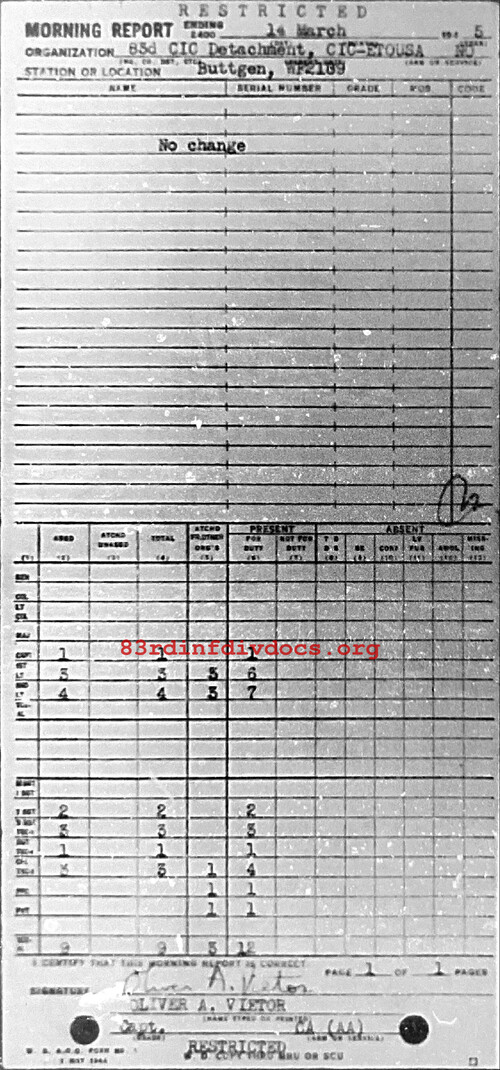 Morning report CIC/83 for March 14, 1945