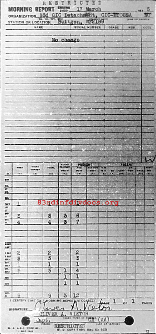 Morning report CIC/83 for March 17, 1945