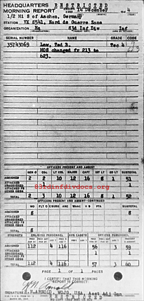 Morning report HQ/83 for December 14, 1944