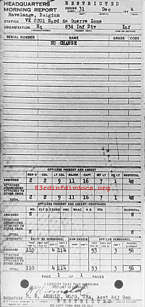 Morning report HQ/83 for December 31, 1944