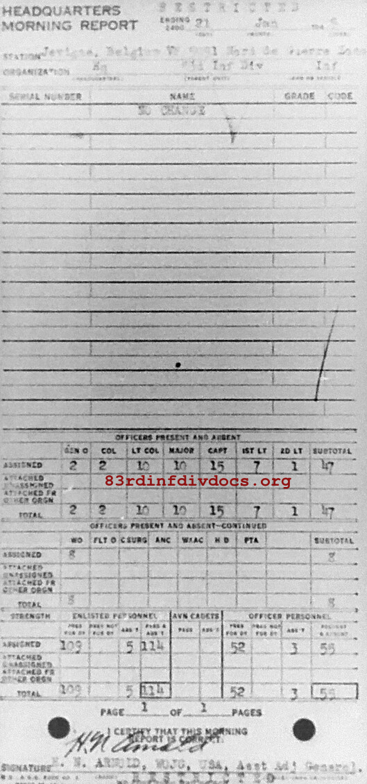 Morning report HQ/83 for January 21, 1945