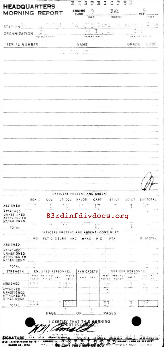Morning report HQ/83 for February 9, 1945