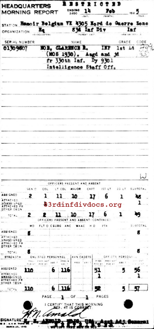 Morning report HQ/83 for February 14, 1945