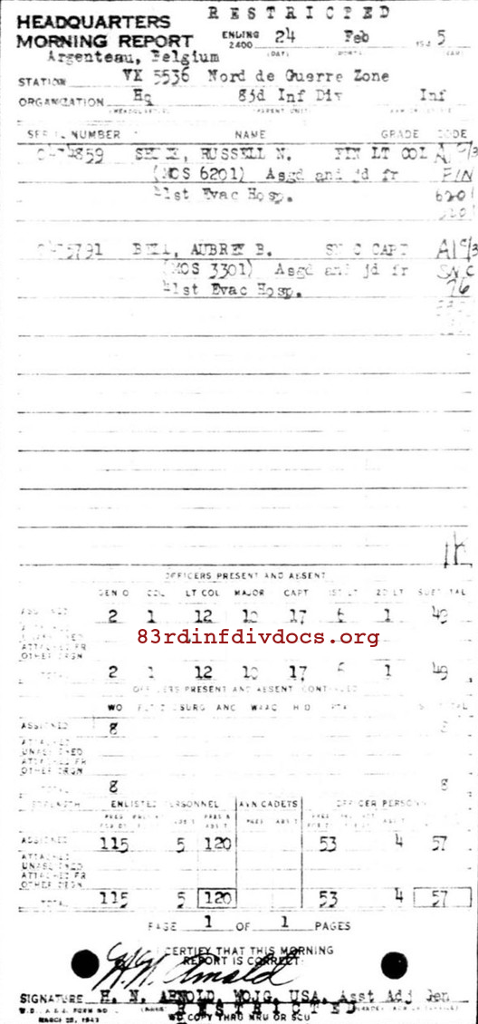Morning report HQ/83 for February 24, 1945