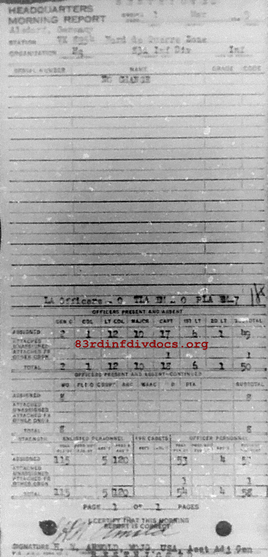 Morning report HQ/83 for March 1, 1945
