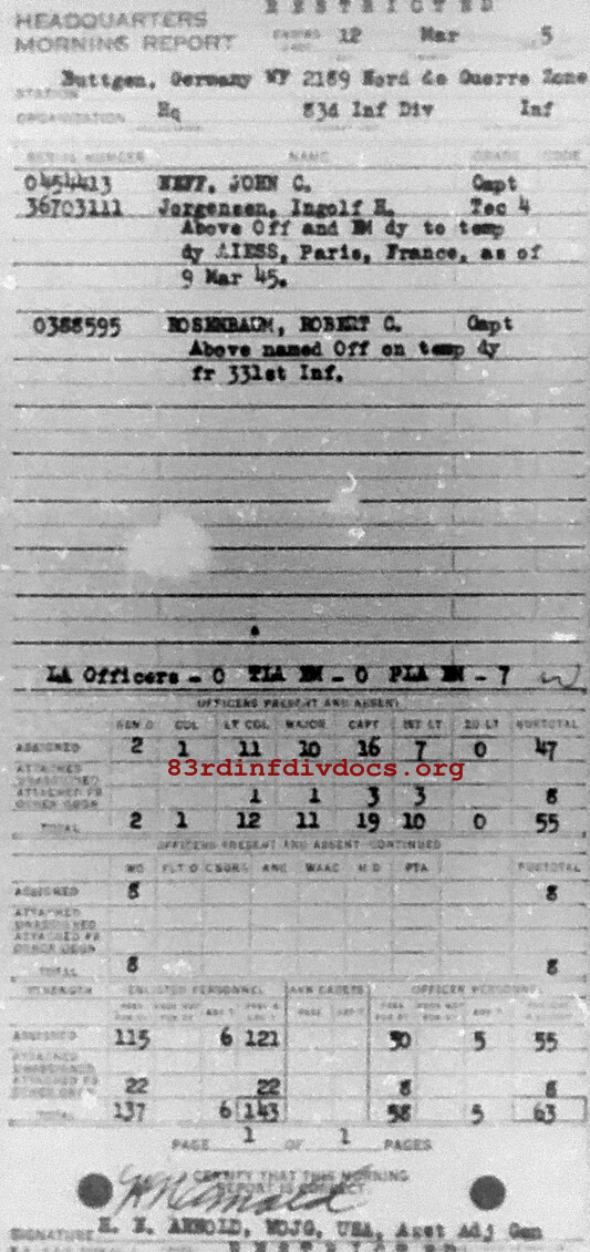 Morning report HQ/83 for March 12, 1945